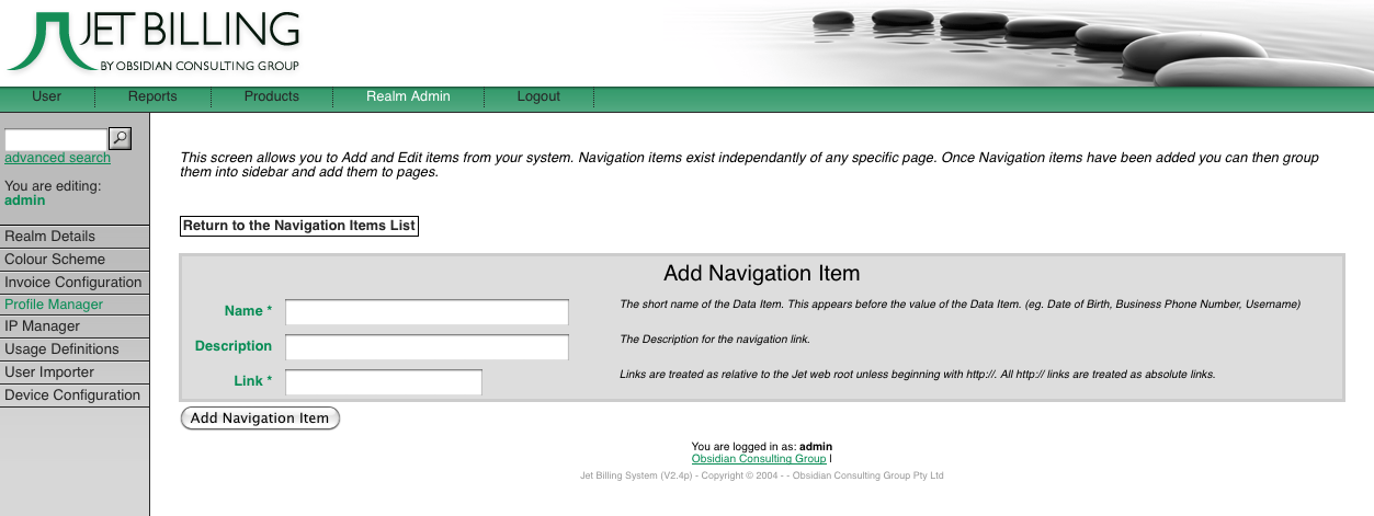 - Edit an existing Navigation Item: click on the hyper linked name of the data field you want to edit.