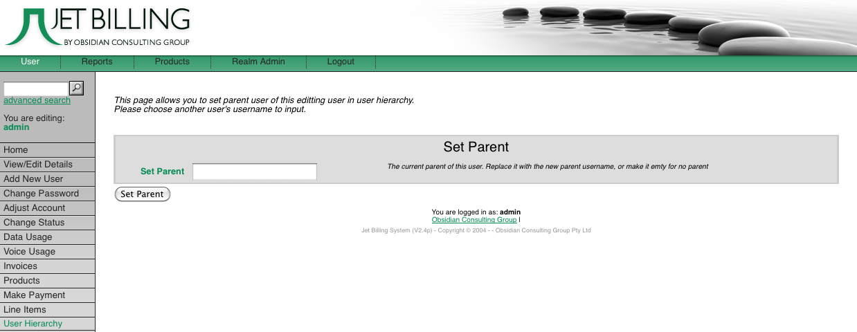 This tool will allow you to set a ‘parent’ account for a selected user. A parent account is typically used in a hierarchical organisation such as a university where users are assigned to cost centres or as a subset of other accounts or objects.