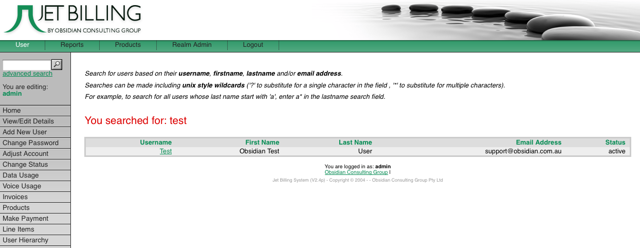After this, Jet will assume that ‘balert’ is the user you are editing until you select another user, or logout from Jet. If you are ever in any doubt as to which user you are currently editing, you can find out by looking at the “You are editing” section. This will be displayed towards the top left of the screen, unless your installation of Jet has been modified to appear differently (rebranded). Wherever it appears on the screen, this section will display the words “You are editing” and then the username of the user that you are currently editing. This section is circled in Figure 8, displayed previously.